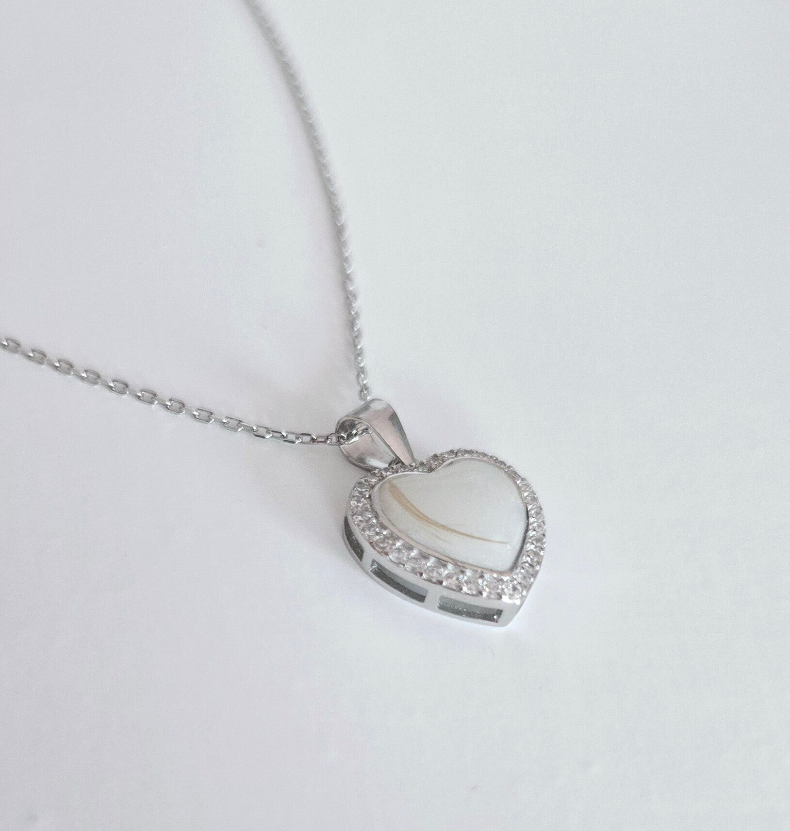 A beautiful silver heart pendant featuring cz stones. This can contain breastmilk or ashes. Option to add inclusions at no extra cost.
